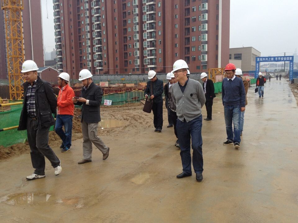 1029,武漢迎來了入秋以來最強降雨降溫天氣,上午10時細雨蒙蒙,集團公司領導虞志鵬總工、李震修副總工、集團各職能部門主要負責人及我公司錢濤總經理、秦林副總經理、梅浩副總工等一行十幾人,冒雨蒞臨黃陂萬基國際廣場二期工程參觀并了解工程進展情況,對工程中存在的問題作出指導意見。