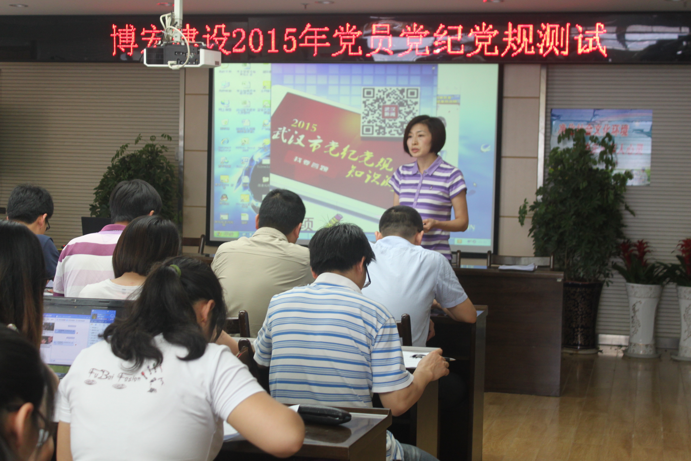 根據武漢市、漢陽區紀委統一要求,2015年5月29日下午,我公司黨支部組織全體黨員參加了2015年黨紀黨規測試。公司39名黨員同志通過集中考試,學習了廉政建設、黨紀黨規、政治常識等方面的內容,全體黨員在黨紀黨規認識上有了新提高,紛紛表示要進一步加強學習,積極發揮先鋒模范作用。