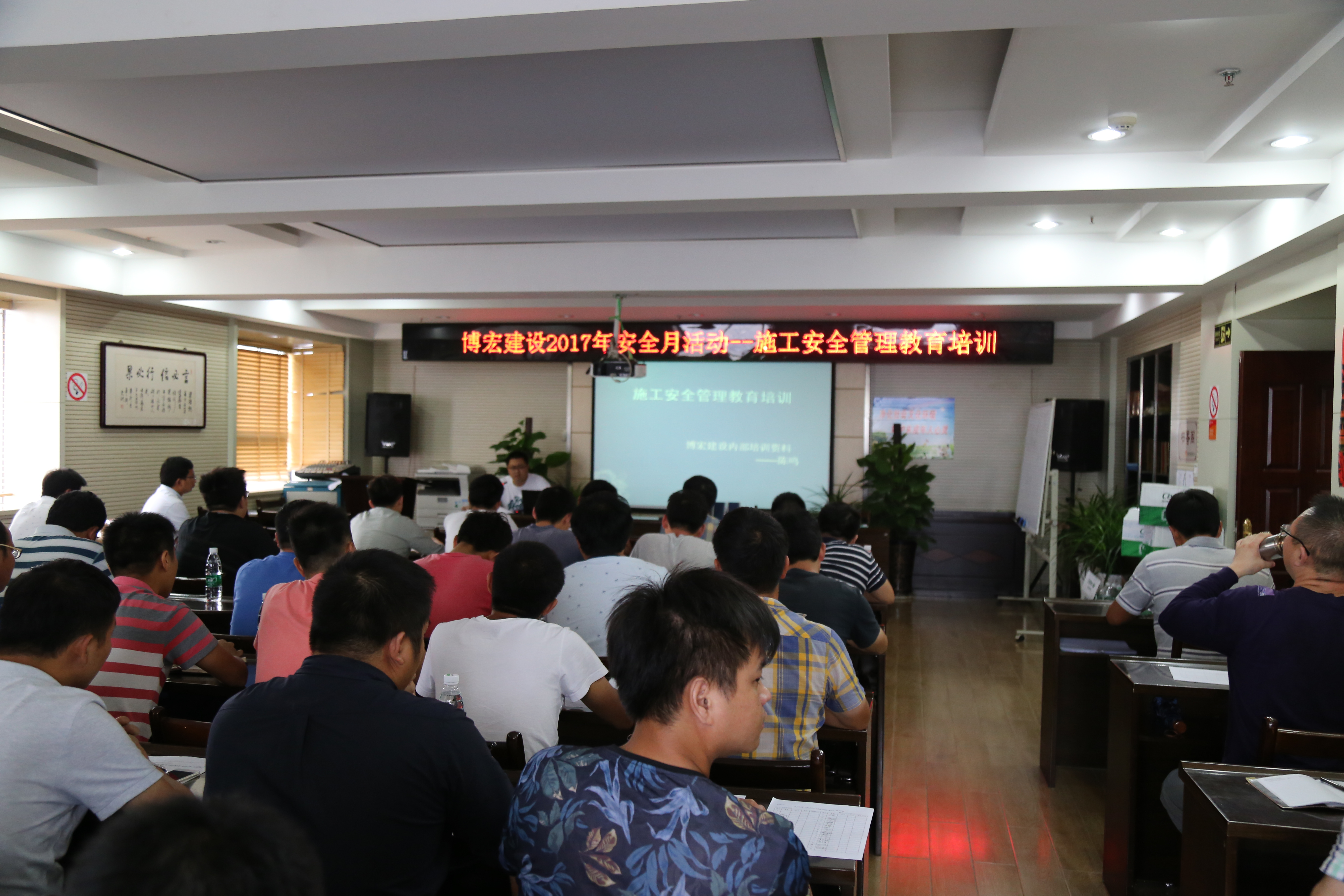 613日下午,為積極開展“安全生產月”活動,增強安全管理能力,博宏建設組織開展了施工安全管理教育培訓活動,公司各項目經理、安全員、施工員共計39人參加了此次培訓。