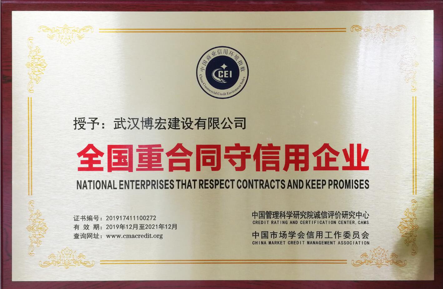 博宏建設(shè)榮獲“全國(guó)重合同守信用企業(yè)”稱號(hào)