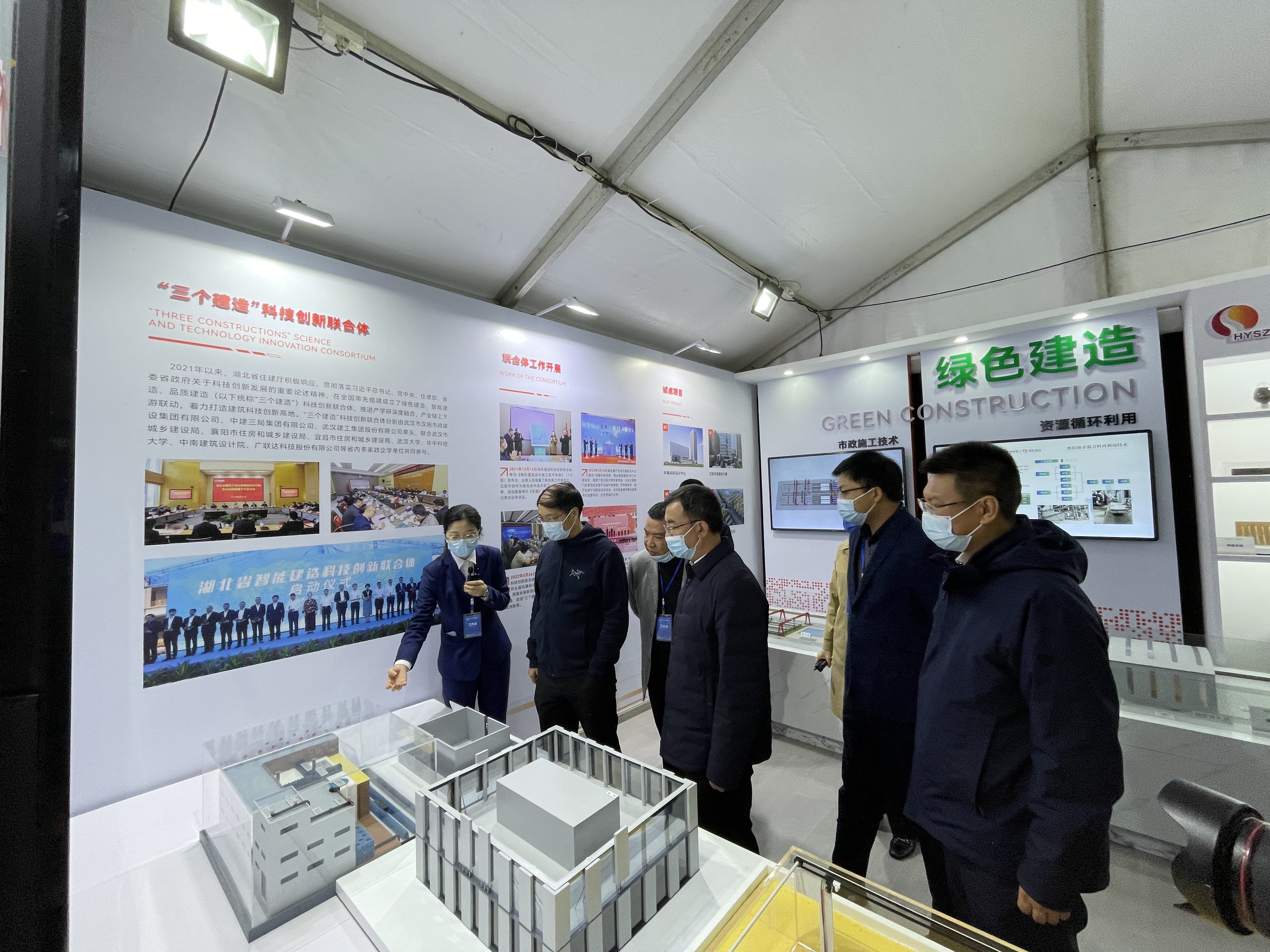 10月28日15時,2022長江·三峽建筑產業博覽會在宜昌沿江大道世界和平公園云上開幕,漢陽市政聯合博宏建設集團作為參展方在央企特裝展區精彩亮相,以海報、模擬沙盤、視頻、講解等多種方式對外展示公司近年來在綠色建造、智慧建造、品質建造領域的科技實踐成果。