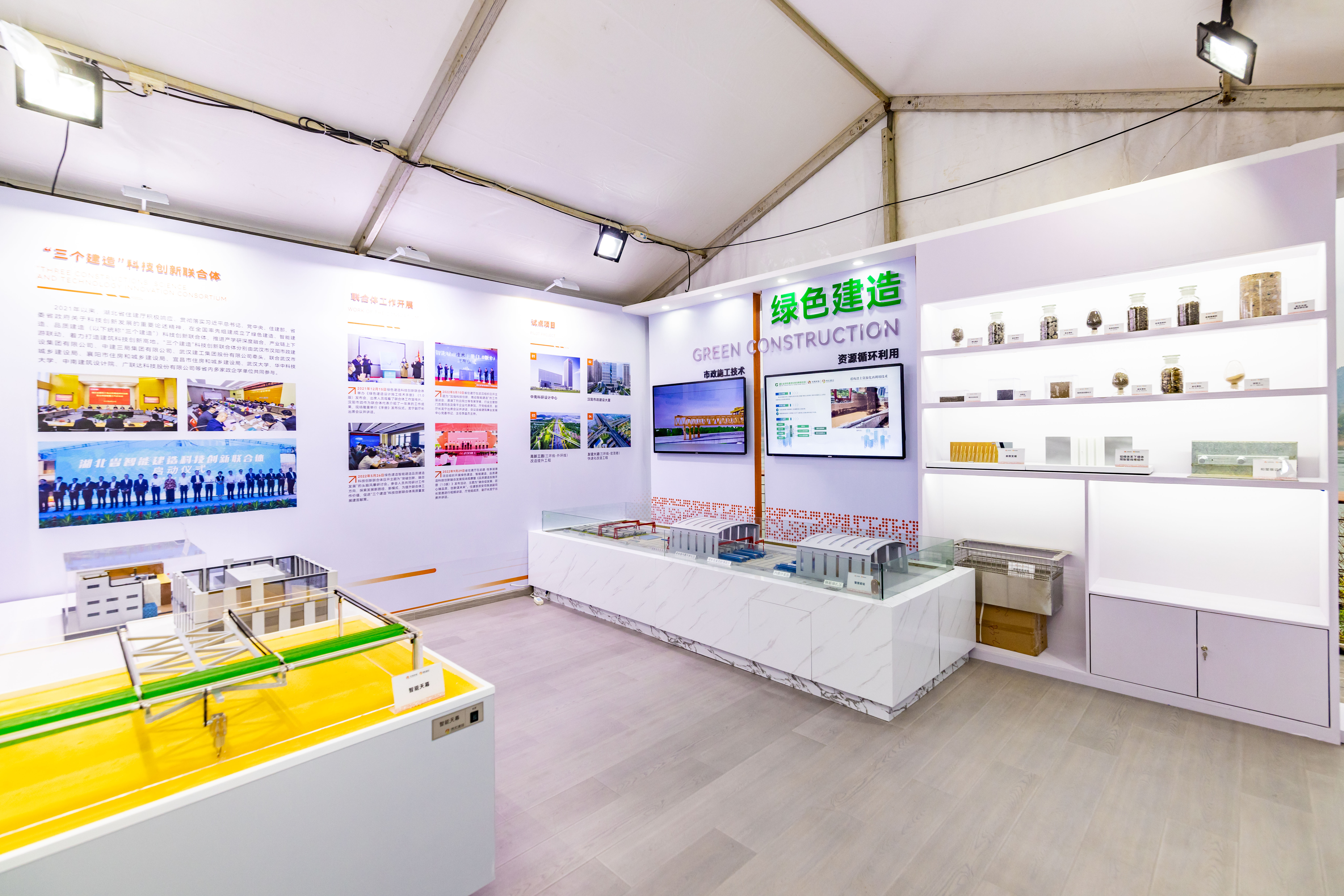 綠色建造區展示了公司先進的市政施工技術和資源循環利用工藝,其中廢舊瀝青混合料和建筑固廢再利用等技術可以提高資源利用效率,助力創建綠色宜居環境。