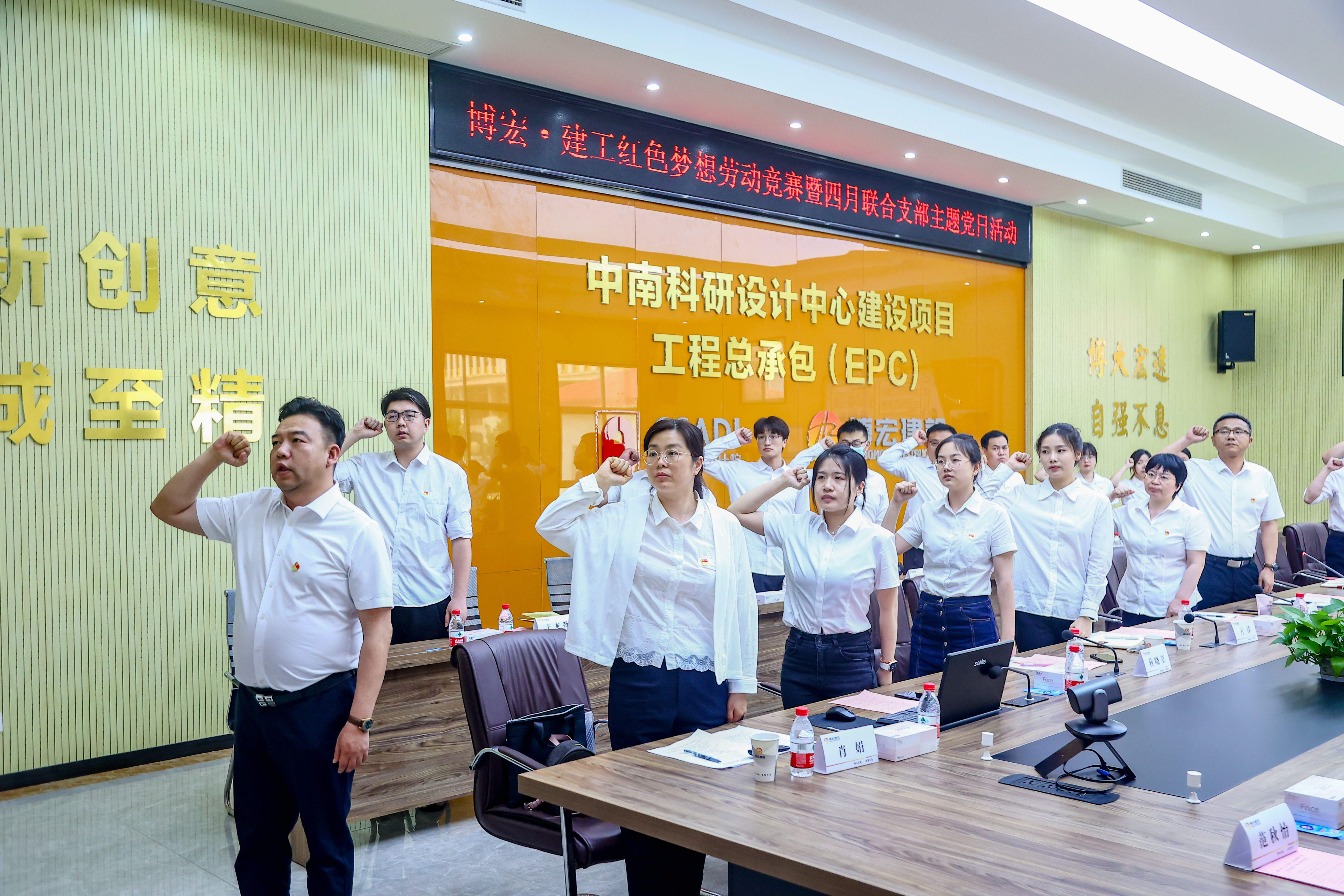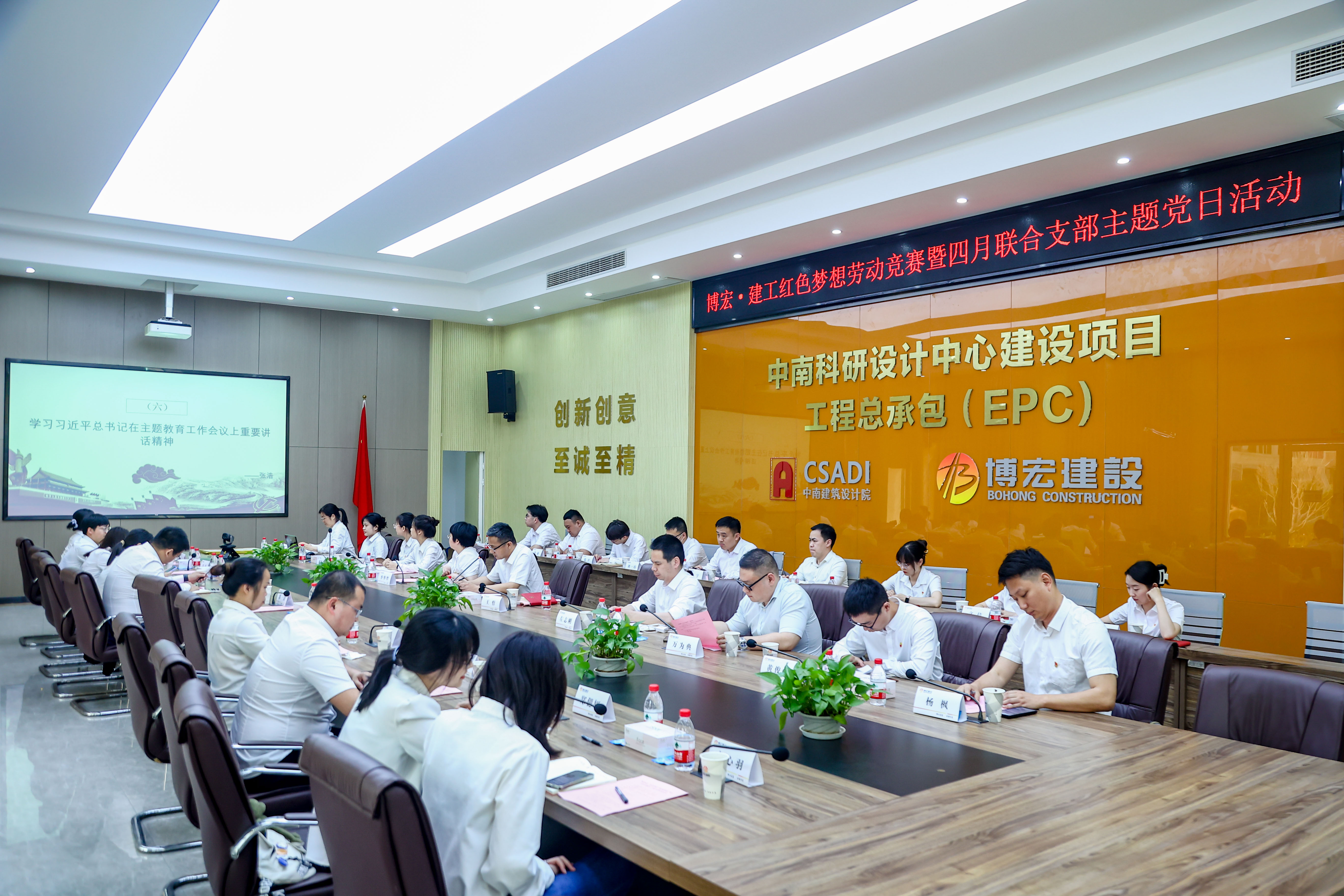 為深入學習貫徹黨的二十大和省十二次黨代會精神,大力弘揚勞模精神、工匠精神,4月21日下午14:30,博宏建設集團與長投建工聯合組織開展“紅色夢想”知識競賽暨4月支部主題黨日活動,會議在博宏建設集團中南科研設計中心項目會議室舉行,會議由鄂康施工企業聯合黨支部書記、長投建工董事長張浩主持。