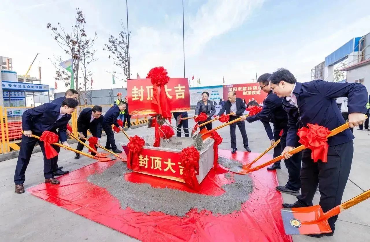 2023年11月8日上午,漢陽市政科研中心封頂儀式在項目現(xiàn)場隆重舉行。漢陽區(qū)國資局黨組書記、局長嚴俊,漢陽區(qū)建設(shè)局黨組成員、漢陽區(qū)建管站站長王晟,漢陽市政集團黨委副書記、副董事長虞志鵬,總工程師荊武及相關(guān)部門負責(zé)人,兄弟單位主要領(lǐng)導(dǎo),博宏建設(shè)集團黨委書記、董事長、總經(jīng)理鄒勇,常務(wù)副總經(jīng)理奚雷等相關(guān)領(lǐng)導(dǎo),以及項目一線建設(shè)者共計60余人共同見證項目封頂。